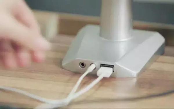 此外,这款支架用航空铝材制作,坚实耐用,还好看。而且底座只有巴掌大小,可有效节省桌面空间,还自带 USB 插口和耳机插孔,很方便呢。