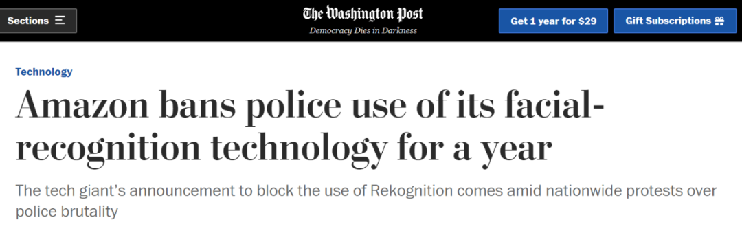 如下图所示,美国《华盛顿邮报》就在过去几天里先后报道了这三家公司的决定,其中IBM的印度裔首席执行官Arvind Krishna,是于当地时间周一最先提出的这个打算,亚马逊在2天后做出了类似的宣布,微软公司则是在当地时间周四宣布的这一决定。