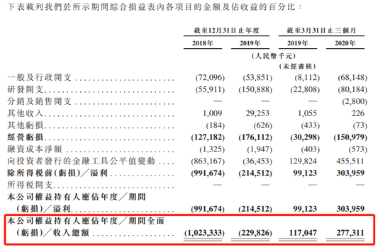 根据招股书,截至2020年首季盈利3.04亿,2019年同期盈利0.99亿元;经营亏损从2019年一季度亏损3.03亿减少为2020年同期的1.5亿。研发开支按年飙升2.51倍至8018.4万元。2019年全年亏损2.14亿元,研发开支达1.5亿元。