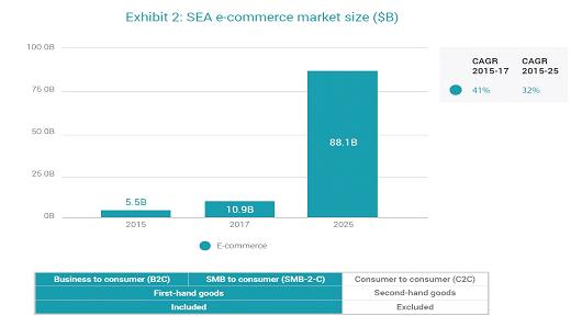 东南亚拥有印尼、菲律宾等快速增长的经济体,而且拥有庞大的互联网用户基础,绝大多数位于移动端。今年,东南亚互联网经济规模将达到500亿美元。到2025年时,这一规模将达到2000亿美元,它在东南亚地区国内生产总值(GDP)中的占比将从2%增加到6%。