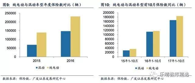 根据交强险数据,2017年1-10月,不考虑普混车型,我国新能源汽车中纯电、插电车型结构占比分别为77.1%、22.9%,15、16年我国新能源汽车中插电车型结构占比分别为29.1%、23.5%。