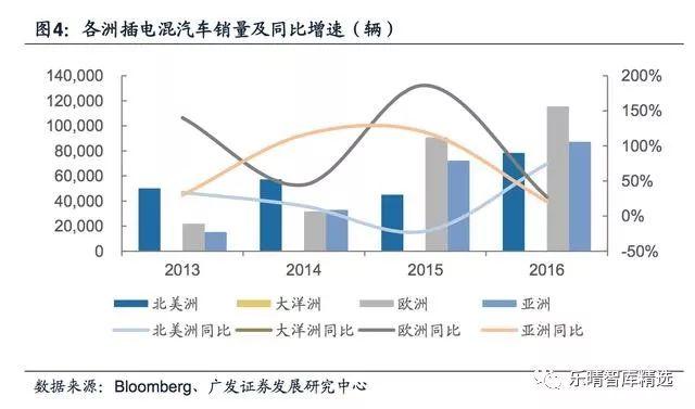 欧洲13年-16年销量分别为2.2、3.2、9.1、11.6万辆,同比分别增长140.1%、44.6%、186.3%、27.1%;