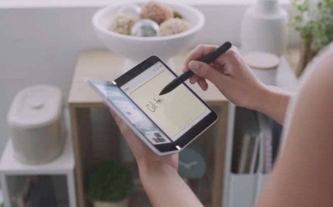 Surface Duo 相当好看,为了让大家看清机器有多薄,Panos Panay 还特地将其横在镜头前。当然,要想把它像普通手机一样放在兜里,估计还是要把牛仔裤口袋加大一号。除了可能改变时装设计细节,双屏或者折叠手机到底意义何在,是所有厂商而非屏幕制造商该问的一个问题。微软的答案是——双屏增加生产力。
