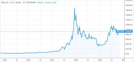 但若跟其强相关的比特币价格相比,却又远远不如,2017年比特币从1,000美元疯涨到20,000美元,整整20倍。