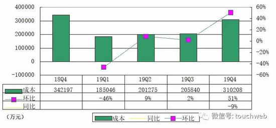 蔚来汽车第四季度销售成本为31.021亿元(约合4.456亿美元),较第三季度的20.58亿元增长50.7%,较上年同期下滑9.3%。销售成本的环比增长,主要受ES6和ES8库存量在第四季度增长的影响。