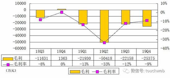 蔚来汽车2019年第四季度毛亏损为2.54亿元,上一季度为毛亏损2.2亿元,蔚来汽车2019年第四季度毛利率为-9%。