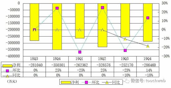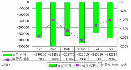 蔚来汽车2019年第四季度运营亏损28.26亿元,运营利润率为-99%。