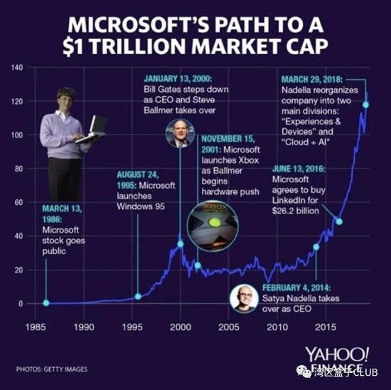 在纳德拉的领导之下,微软在2019年成为第三家超过1万亿美元市值的科技公司(前两家是苹果、亚马逊),而Windows、Office等等这些最闪亮的标签都正在微软的商业画布中慢慢淡去。