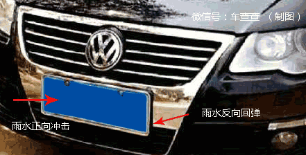 暴雨时,路面上大量的积水除了会正向冲击车牌外,部分积水也会被前保险杠等部位挡回反弹到车牌上,而此时如果车牌只用2个螺丝固定,在雨水前后夹击下就像有人用手不停的拽晃车牌,当积水的冲击力足够大,车牌就被“冲掉”了。