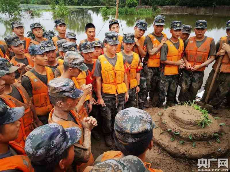 7月17日,坚守在安徽安庆市迎江区新洲乡的陆军第71集团军某合成旅官兵,在战斗在抗洪一线的间隙,举办了一场“特别”的生日派对。 7月16日是连长曹进国和列兵张广建的生日,连队官兵瞒着二人为他们准备了特殊的“生日蛋糕”,“蛋糕”由泥浆做成,用小草点缀,还写上了“生日快乐”祝福语。官兵们唱着生日歌,切着“泥浆蛋糕”,由两位“兵哥哥”亲手铲进了垒坝的沙土袋里,完成了一个无比特殊的生日仪式。 得知这一情况后,新洲乡党委书记张中亚感到,应该为“兵哥哥“过一个真正的生日。“官兵们在一线拼了命地守护百姓的家园,有他们在,人民就安心,百姓就踏实。我们要让他们在新洲这片他们守护的土地上,过一个最难忘、最有爱、最温暖、最特别的生日!”他连夜安排人从市区订做了两个大蛋糕,写着“祝兵哥哥生日快乐!”又精心筹备了一场“生日派对”。地点就在圩堤上,主宾都是官兵们自己。乡政府的姑娘们、青年志愿者们,短暂放下手头的工作,就地取材采了江堤上的野花做成花束,蛋糕摆在临时搭好的简易桌子上,战士们依次列队排开,手上扯着从蛋糕包装盒上解下来的红丝带,“派对”的现场就布置好了。 两位“兵哥哥”被战士们簇拥着带到了蛋糕前,姑娘们为“兵哥哥“送上鲜花,送上最美好的祝福,抗洪一线的圩堤上响起了最动听的“生日快乐歌”...... “这是我过的最难忘的一个生日。我感谢新洲人民,感谢亲爱的战友们。大家让我许愿,我许的愿望是洪水早日退去,人民重返家园,这是我们的使命,更是我们的价值。我的愿望一定会梦想成真的!曹进国说。