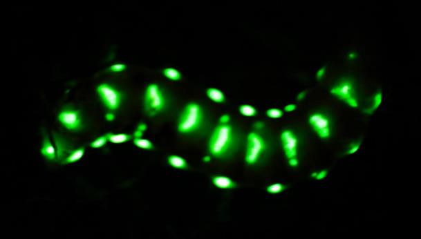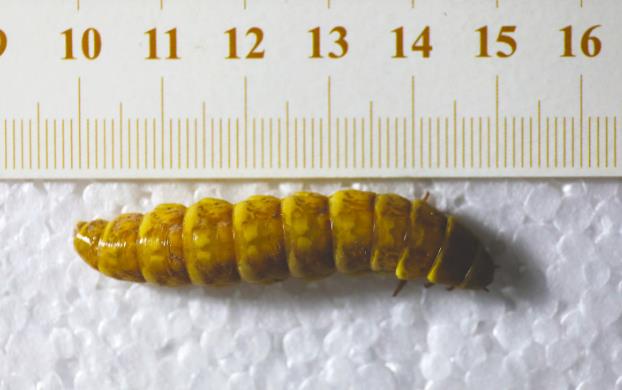 巨型萤火虫浑身披挂30余个“小灯”亮度远超普通萤火虫 在白天,这条巨型萤火虫雌性成虫的外观看起来酷似一条大号的黄粉虫,平平无奇。但是在夜晚,它却奇迹般地全身发出绿光,宛如披挂了几串小灯。据介绍,它身体上的发光点多达30余个,而且不会闪烁,亮度远远超过普通萤火虫,甚至能够将周围数厘米的范围照亮,让人可以看清报纸上的文字。成都华希昆虫博物馆馆长赵力鉴定其为一种巨大的雌光萤科昆虫,由于该种系是在我国首次采集到的,尚无中文名称,赵力依据其分类地位和体型特征,将其命名为巨雌光萤。据了解,巨雌光萤的拉丁学名为Rhagophthalmus giganteus,最早发现于1888年,过去已知分布地为泰国和缅甸。
