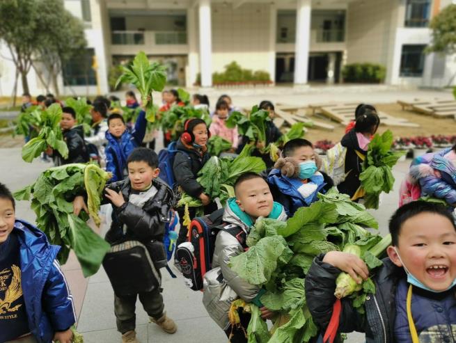 “岸上学不好游泳,嘴里说不出庄稼。”正所谓实践出真知,理论说教远远不及亲自动手所得,让人印象更加深刻。 谁知盘中餐,粒粒皆辛苦。这是每位小学生都要学习的诗句,在成都市金堂县的金山小学,老师们带领小学生们亲自种蔬菜,教会他们真正理解这句诗的内涵。 近日,有家长发布的关于一年级学生在放学回家时,每人手里抱着一颗大青菜,脸上洋溢着收获的喜悦的视频在网上走红。 据金山小学校长张楠介绍,这所学校刚成立不久,在规划设计之初,学校就在每一栋教学楼楼顶留出一块用于劳动实践课程的空地。去年9月,学校正式教书育人后,这些空地就被利用起来了。 目前,一共有24块空地,每个班级都有一块,通常是在劳动课上或者利用课后时间,由老师以及家长志愿者带领孩子们在这里种植各种各样的蔬菜。 在谈到种植成功的蔬菜怎么处理时,张楠介绍说,“各个班级处理方式都不一样”。 有的班级会在老师的带领下,将成熟的蔬菜摘下之后,送到学校食堂,由食堂师傅做成美味的饭菜,学生们自己享受自己的劳动成果;有的班级也会直接在校门口售卖,刚摘下来的蔬菜很新鲜,家长们也十分支持,卖菜所得的钱一般充作班费,用于班级奖励;有时候,也会摘下来让孩子们带回家里,和家人一起分享自己的劳动成果。 1月21日,学生刚参加完期末考试,刚好遇上一年级学生种植的青菜成熟,为了让孩子们体会到“付出就有回报”的获得感,老师便带领孩子们去摘了青菜,让孩子们带回家,与家里人共同分享收获的喜悦。 据家长们反映,一年级孩子将蔬菜带回家以后,还会叮嘱父母不要浪费,要将青菜全部吃掉,自己种菜非常不容易。 张楠表示,学校规划“屋顶农场”的目的也很明确,就是想让孩子们全面发展,贯彻劳动育人的理念。 当孩子们亲自参与了种植全过程,不仅增加孩子们与土地的接触机会,让孩子们对于各类蔬菜都有自己的认识,还能够让孩子们从小的时候就懂得粮食来之不易,培养他们珍惜每一粒米的习惯与认知,还能够间接培养他们尊重每个人的劳动成果的观念。