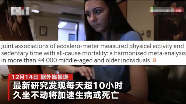 12月14日,据外媒报道,最新研究发现每天超10小时久坐不动将加速生病或死亡。该研究基于WHO发布的身体活动和久坐行为最新指南,由挪威体育科学学院完成,发表于《英国运动医学杂志》。报告指出,人们每天可进行30至40分钟中强度运动,这将大幅降低患病和死亡风险。