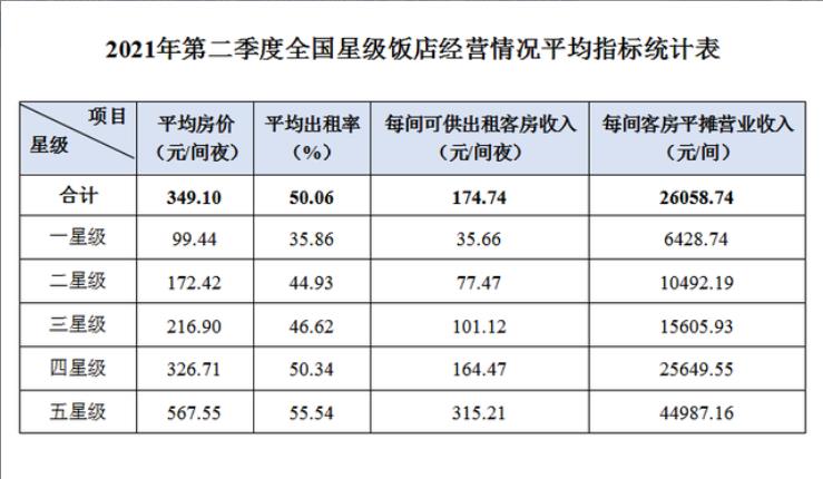 近日,国家文旅部市场管理司发布2021年第二季度全国星级饭店统计调查报告。上述报告显示,2021年第二季度,共有6894家星级饭店的统计数据通过全国各省级文化和旅游行政部门审核(本文图表均来源于国家文旅部)。 从此次上报的数量和省区分布来看,二季度我国共有五星级饭店736家,其中广东、浙江、上海、江苏、福建位居前五,分别有91家、75家、65家、63家和48家;另外,甘肃、西藏、贵州、广西、黑龙江、吉林、山西等省份的五星级饭店数量为个位数。 全国共有四星级饭店2079家,其中浙江、山东、广东、江西、福建位居前五,分别有150家、131家、123家和118家;共有三星级饭店3277家,其中广东、山东、云南、河南、浙江、广西位居前五,分别有253家、226家、171家、169家、169家和161家,河南与浙江并列第四。 从营业情况来看,纳入统计的6894家各类星级店饭,二季度营业收入为373.03亿元,其中餐饮占比40.06%,客房收入占比44.92%。纳入统计的饭店间夜平均房价为349.1,平均出租率50.06%。今年二季度,饭店营业收入排名前五的省份为上海、北京、浙江、广东和江苏,前五收入区间为28.13亿元至36.42亿元。