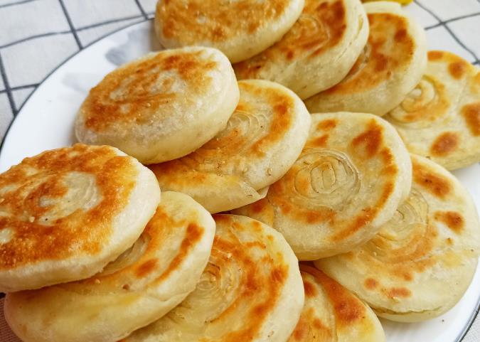 食材:面粉、酵母粉 调味:白芝麻、椒盐、食用油 1、准备400克小麦面粉,加入4克酵母粉,比例为100:1,用筷子调拌均匀。 2、准备适量的温开水,别一次性倒入太多,边倒边搅拌,等变成大面絮的样子,下手揉成中等软硬,光滑的面团。 3、在案板上撒些干面粉,无需发面,也无需醒面,直接用手按压成扁形。 4、用擀面杖擀成0.5厘米,长方形的大面皮,擀的时候,先从中间开始,往四周慢慢的擀,发力要均匀,表面刷上一层食用油,撒上一层椒盐,再撒一层熟芝麻。 5、从一头慢慢卷起来,卷时稍微用一点力,卷的圈数越多,成品纹路就越多,口感也会更好吃。 6、用刀分成相等的剂子,爱吃大号的饼,可切的大一点,看个人的喜好。 7、取出一个剂子,把尾部抿在一起,稍微整理一下,然后用手按扁,全部做好之后,盖一层保鲜膜,醒发30分钟,这一步万万不可忽略。 8、电饼铛预热1分钟,刷一层薄油,下入做好的饼胚,在饼的表面也刷一层油,锁住内部水分,开小火先烙3分钟。 9、等待时间到了,再翻另外一面,烙上2分钟,然后每隔1分钟翻一次,让饼保持受热均匀,等到两面金黄,按下有弹性,即可出锅了。 10、一道好吃的发面饼就做好了,一定要趁热吃,色泽金黄,表皮酥脆,光闻着味就流口水了,咬一口浓浓的芝麻香味,发面制作的,很容易消化,小朋友第一次吃了3个,不撑不罢休。